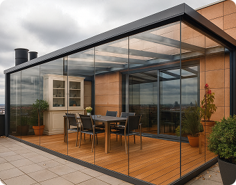 Остекление террас и веранд с раздвижными створками и терморазрывом