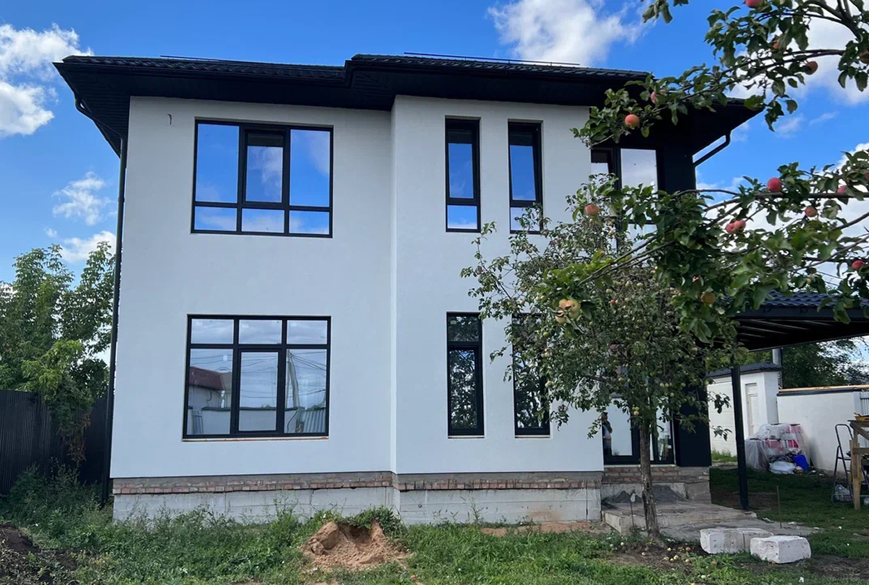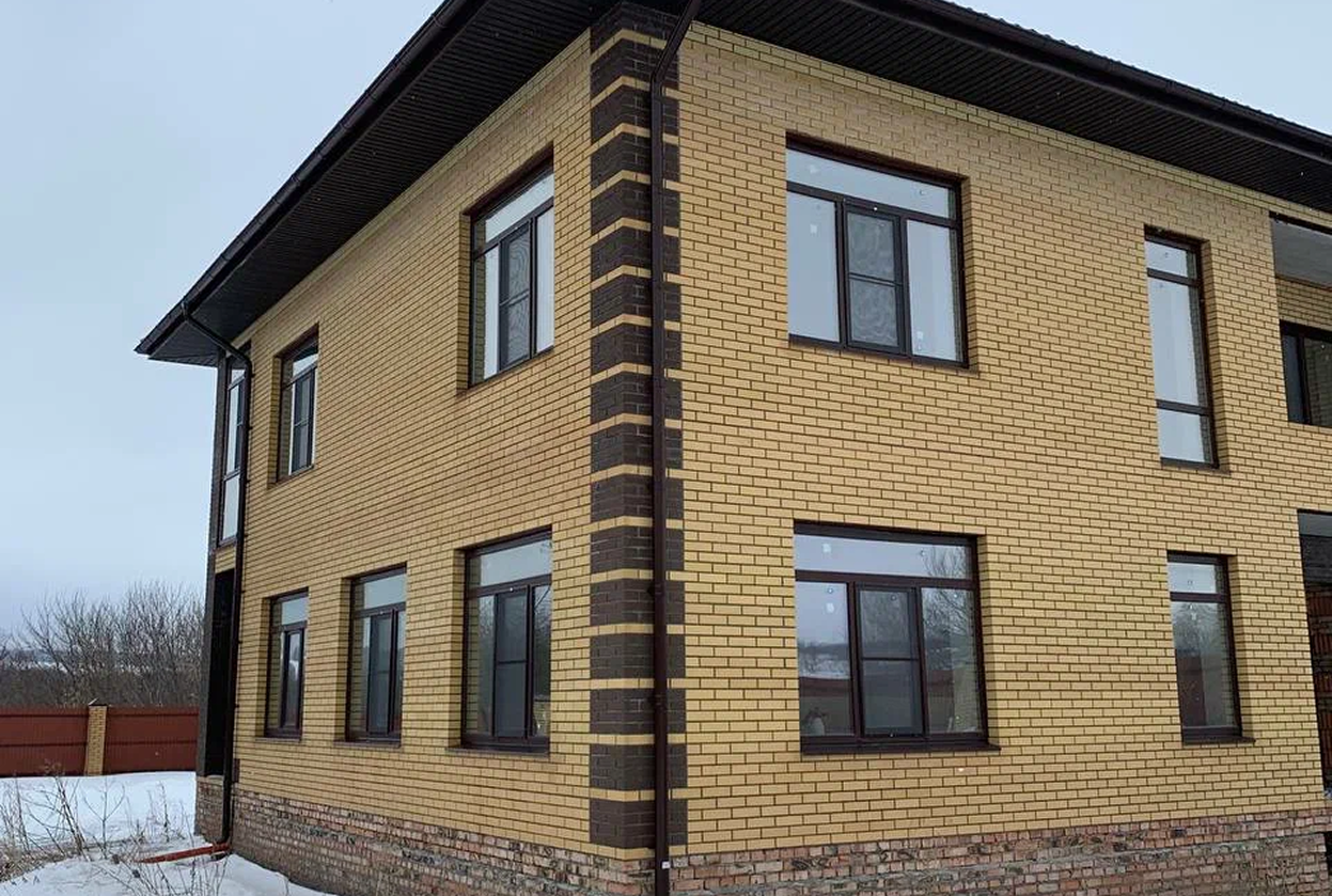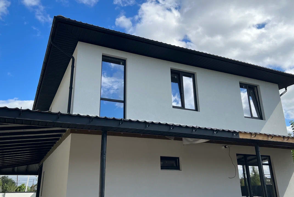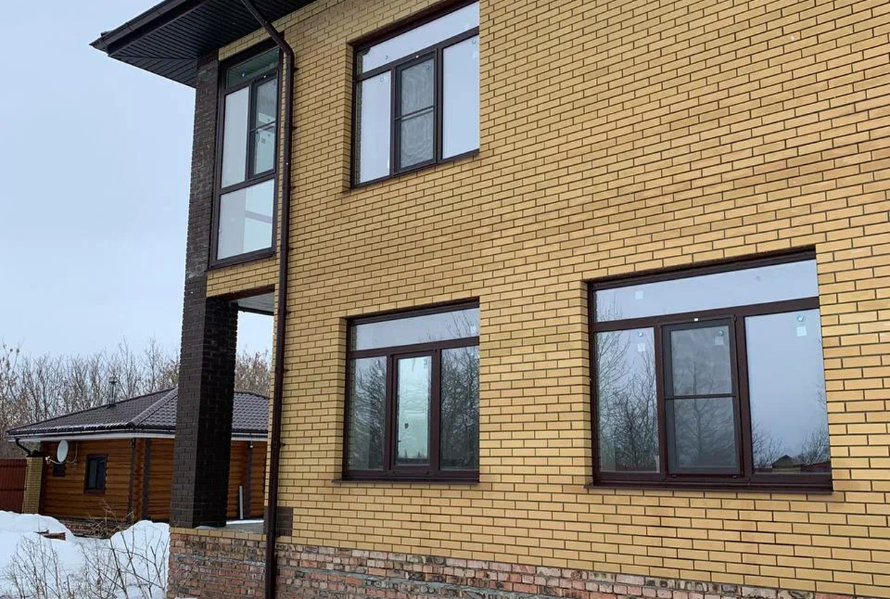 Темная ламинация профиля идеально гармонирует с фасадом дома.