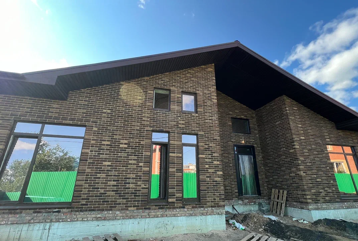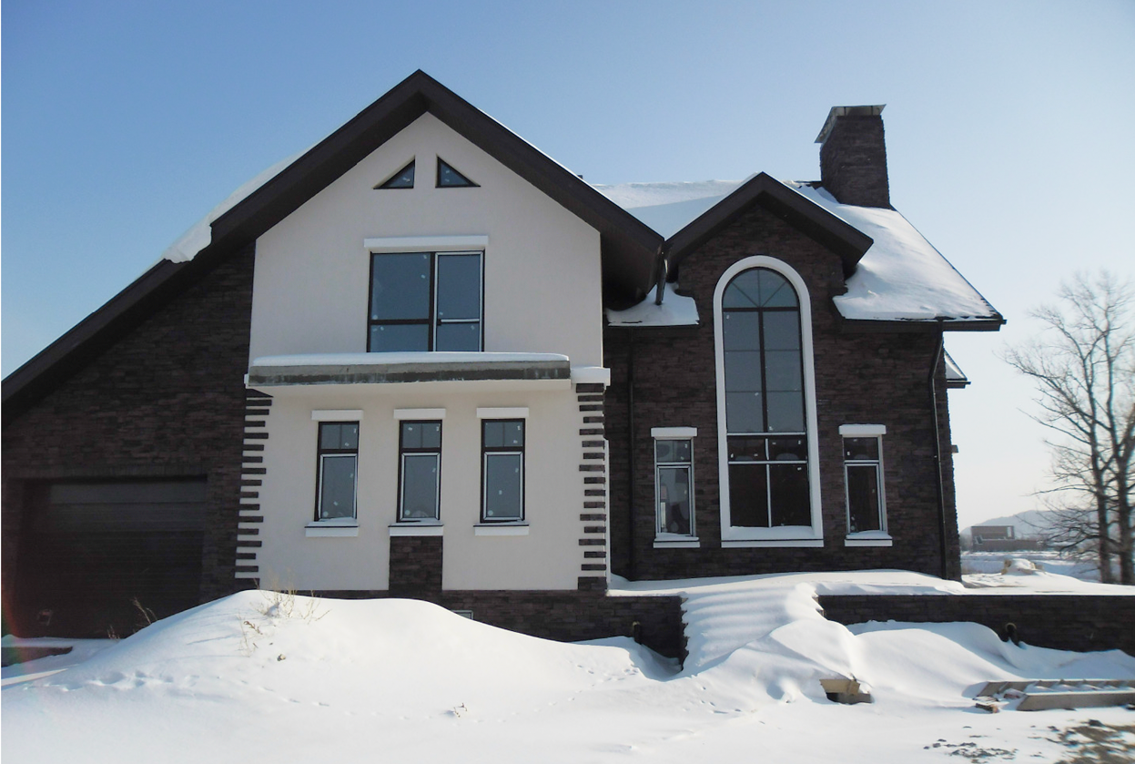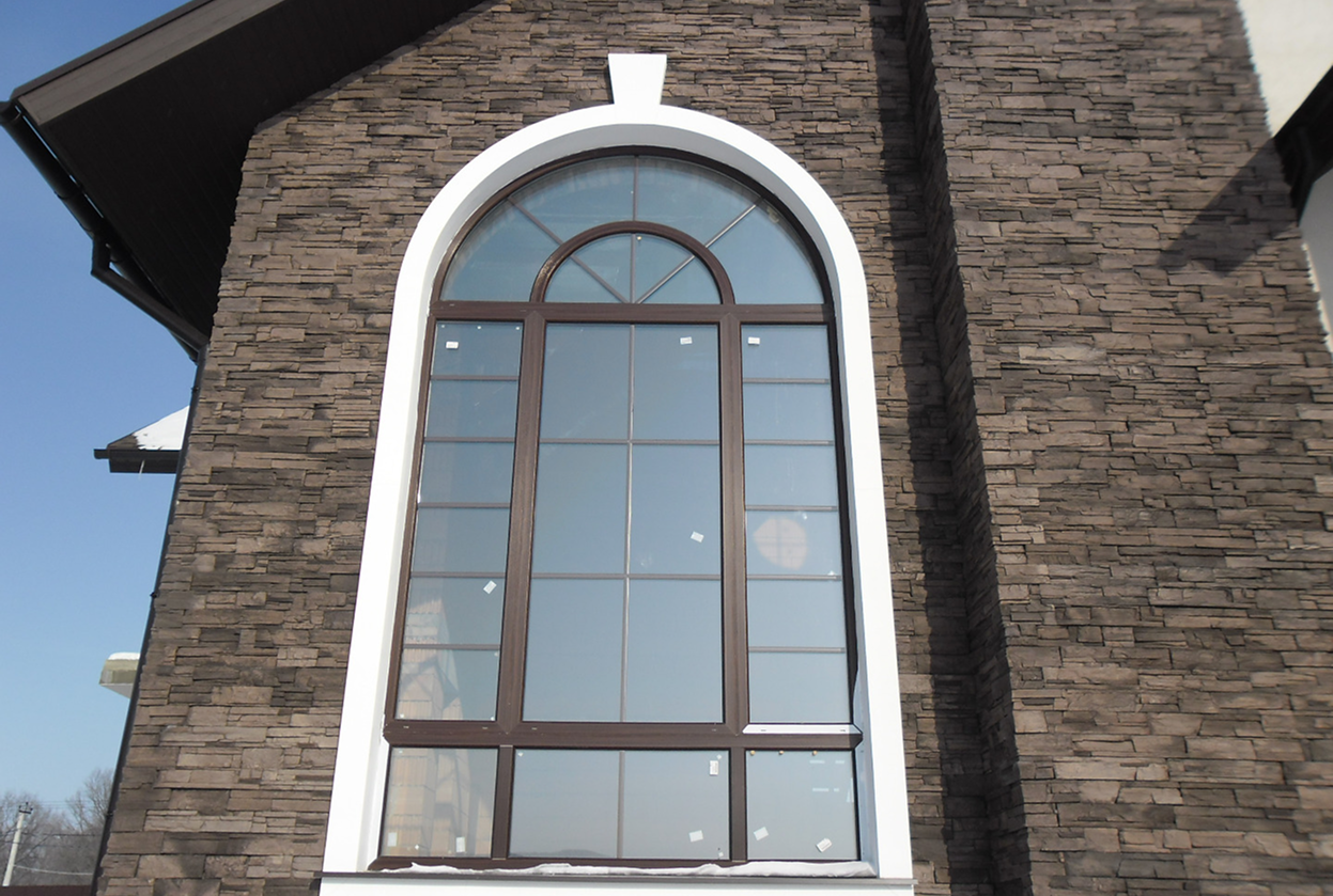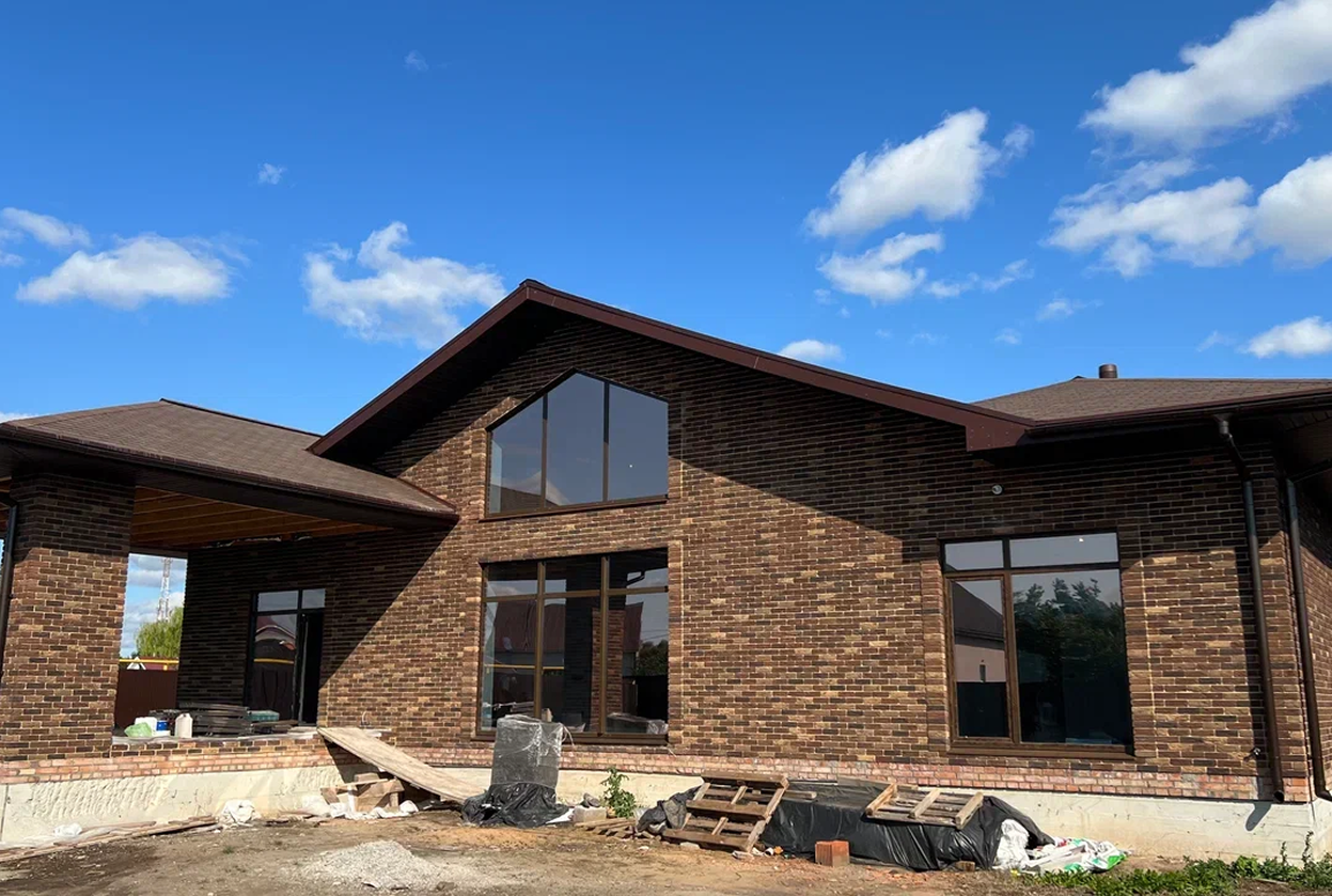 Темная ламинация профиля идеально гармонирует с фасадом дома.
